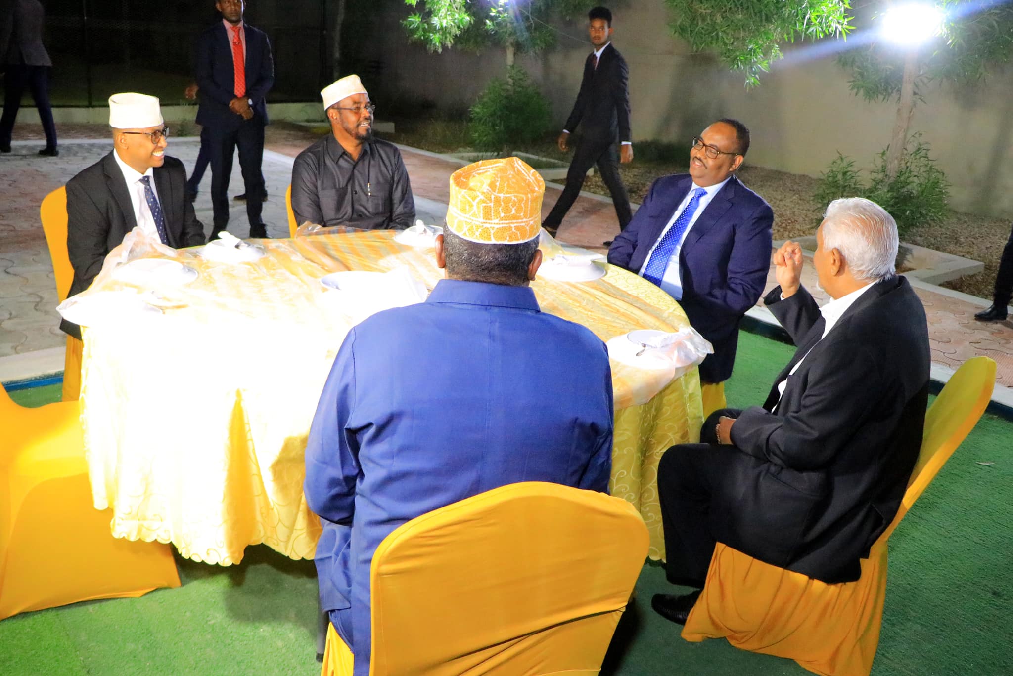 Garoowe: 18 November 2021: Madaxweynaha Dowladda Puntland Mudane Siciid Cabdullaahi Deni, oo uu weheliyo Madaxweyne Ku-xigeenka Dowladda Puntland Mudane Axmed Cilmi Cismaan Karaash ayaa caawa Qasriga Madaxtooyada kaga qeybgalay kulan Casho Sharaf ah oo loo sameeyay Madaxweynaha Jubaland Mudane Axmed Maxamed Islaam iyo wafdiga uu hoggaaminayo ee ku sugan Garoowe.