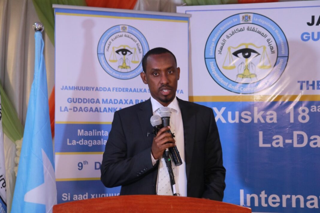 Muqdisho, Soomaaliya – 09 Diseembar, 2021 – Munaasabadda Maalinta Caalamiga ah ee La-dagaalanka Musuq-maasuqa, Guddiga Madaxa Bannaan ee La-Dgaalanka Musuqmaasuqa (GMLDM) ayaa maanta hoosta ka xariiqay baahida loo qabo in hal meel looga soo wada jeesto musuqmaasuqa taasoo ah ballan-qaad cusub oo lagu xaqiijinayo hufnaanta iyo isla xisaabtanka hay’adaha dowliga ah ee Soomaaliya.