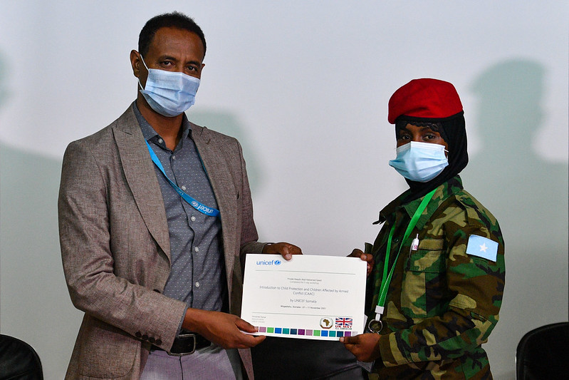 Held in Mogadishu, the training was facilitated by the United Kingdom Mission Support Team (UK-MST) in collaboration with AMISOM Force Headquarters (FHQ), the United Nations Children’s Fund (UNICEF) and the SNA.