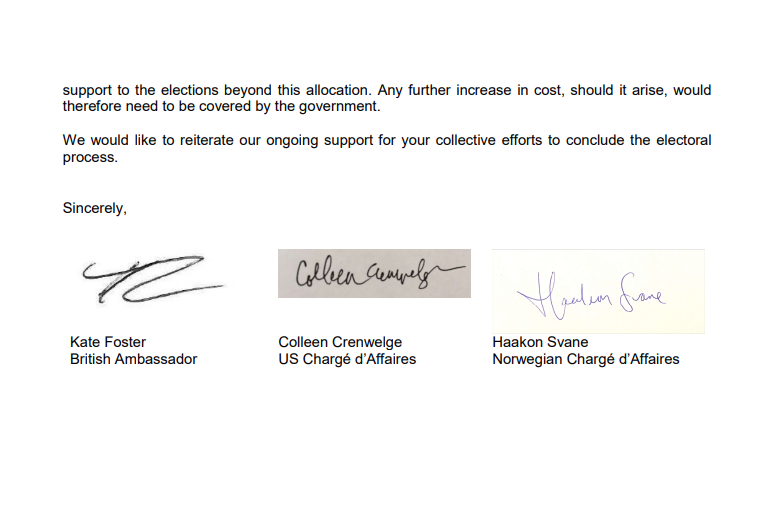 The three donors expressed concern about the affordability, credibility, and the timeliness of the significantly delayed electoral process.